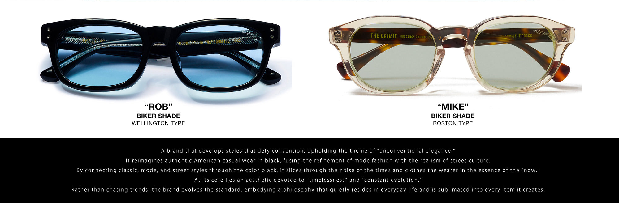 デザイナー自らが過去LAとTOKYOを拠点に活動しながら、メガネの聖地・福井県鯖江市のノウハウを徹底的に習得し、国内有名ブランドとのコラボや経験を経て、オプティカルブランドに引けを取らない、THE CRIMIE独自のオリジナルモデルとして展開。