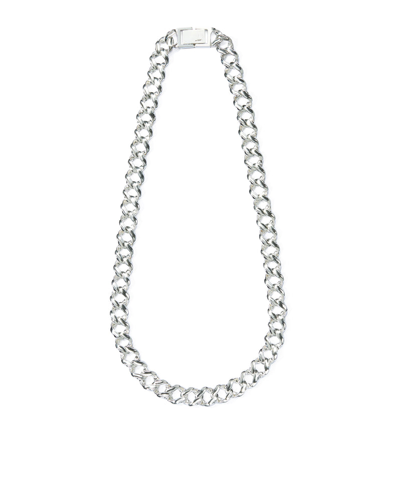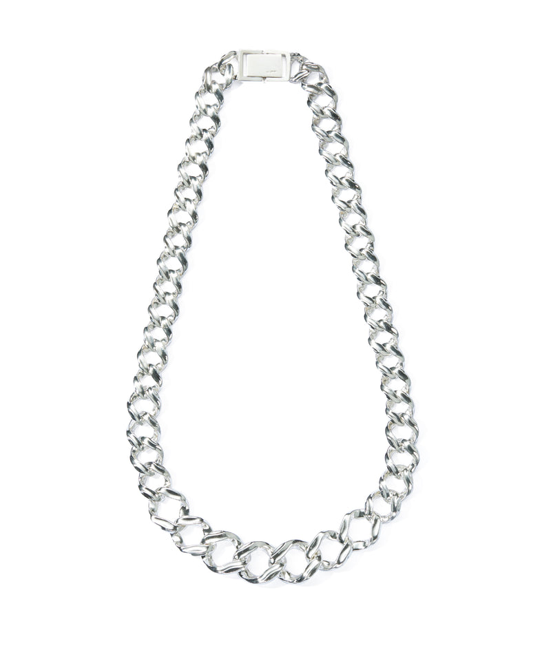 程よくエッジを効かせつつ、流れるようなラインを持たせた美しいフォルムのコマ。それらをグラデーション状に組み合わせることにより、表情豊かな耀きを実現させたネックレス。