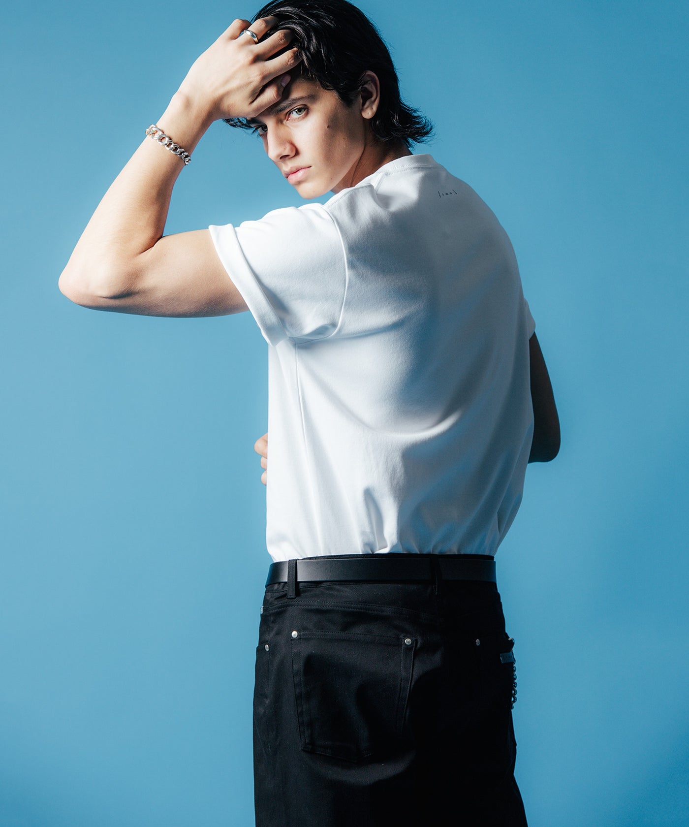 お次にシルエットについて。「いやいや、普通のTシャツでしょ?」なんて言う方もいそうなので先にお伝えしておきますが、シルエットが相当美麗。特筆すべきは脇下の縦ライン。何も考えず着用しても身体に綺麗に沿う仕上がり。世界的モードブランドならまだしも、ストリート出身のブランドとは思えないほどにパターンが秀逸なのは、着ると理解できるポイントの一つ。