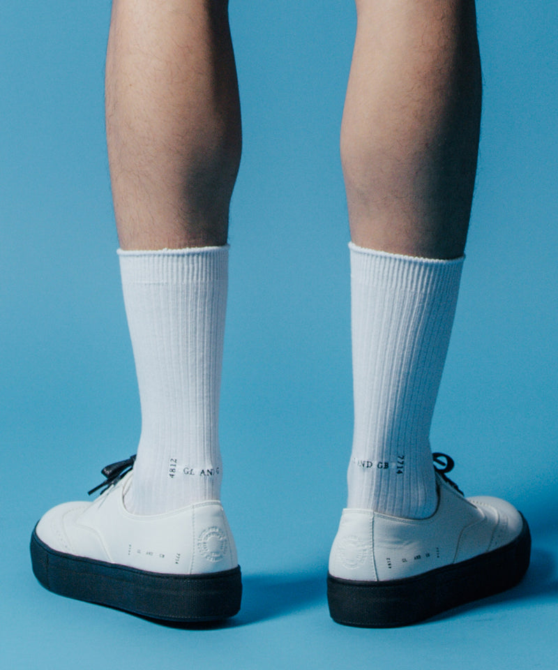 THE CRIMIEのソックスはリブソックスのうえ、ワンポイントのダイヤログロゴが刺繍で入っているのが、また些細なセンスではないんでしょうか?(笑)。