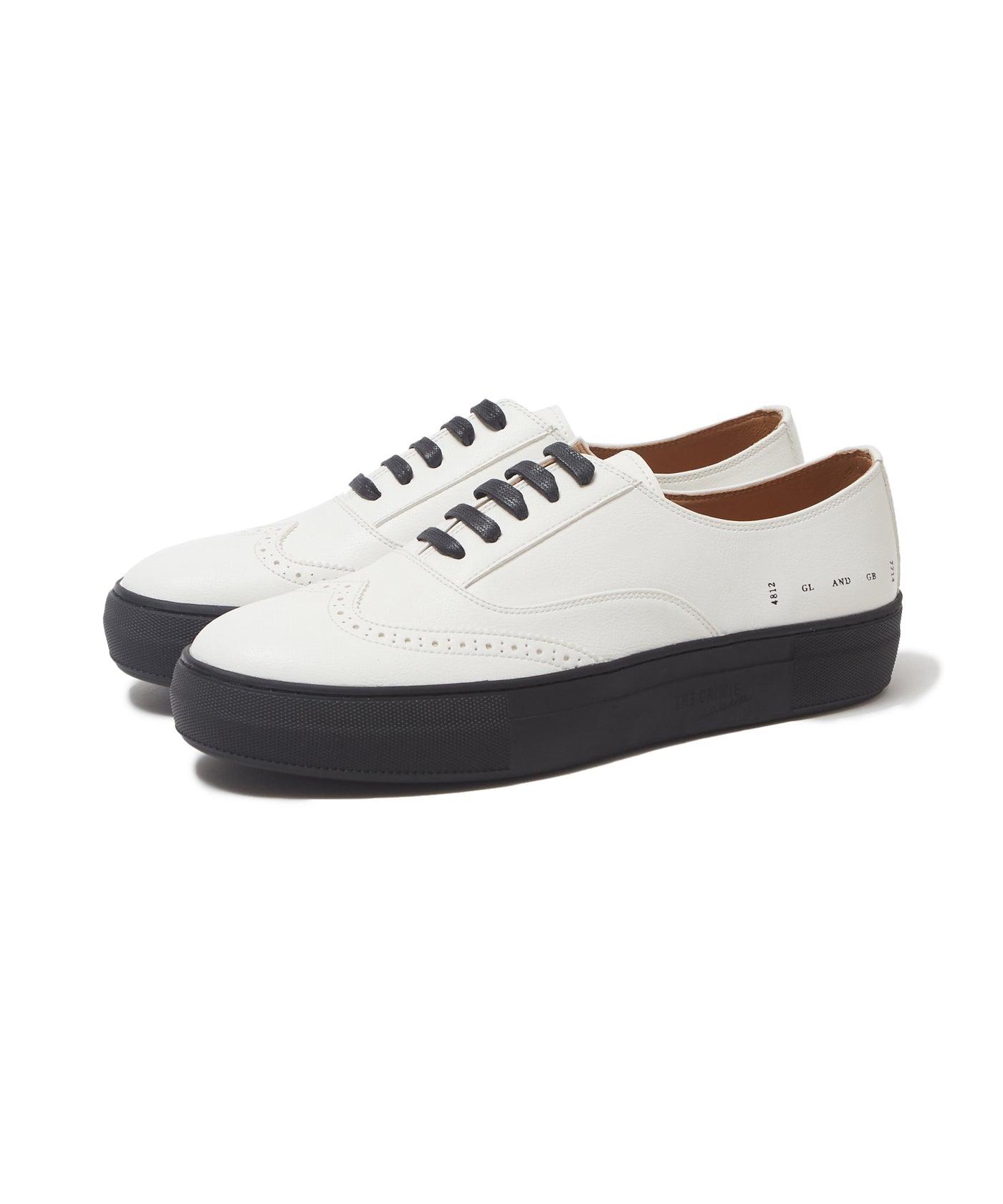 とうとうリリースされましたね、THE CRIMIEのスニーカー。ずっと待っていましたよ、ずーっと(笑)。THE CRIMIEのデザイナーのYONHO氏がだいぶ前から何度も作り直していたのを横で見ていたアイテムね(笑)。ドレスシューズのツラをしたスニーカー。イイじゃないですか、イイじゃないですか。 暑い夏にはすぐに楽な格好をしがちな自分にはもってこいのアイテムですよ。 ショーツでもこのシューズがあれば、ビシッとキマっちゃうから。